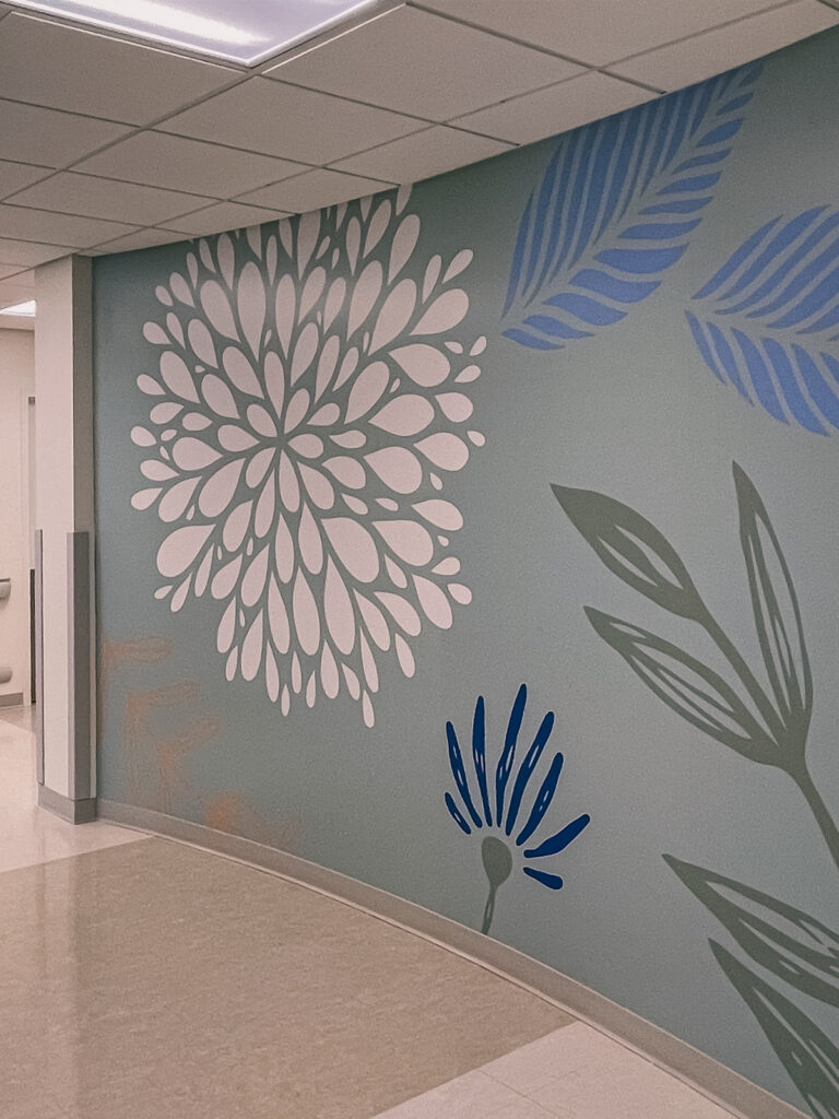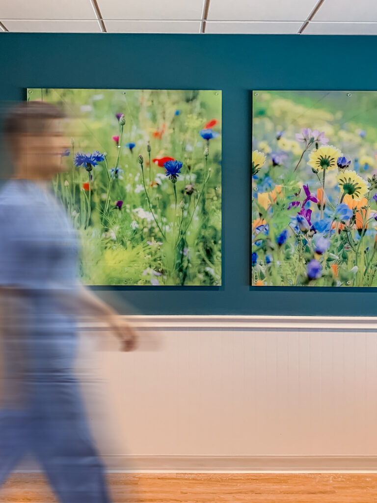 Calming imagery for waiting areas, artwork for patient rooms, nature-based graphics that reduce anxiety. Materials specified for clinical durability while maintaining aesthetic quality.